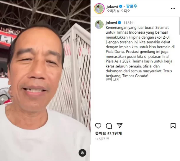 조코 위코도 대통령은 자신의 개인 SNS를 통해 인도네시아 대표팀의 승리를 축하하며, “이번 승리로 우리는 월드컵 출전이라는 꿈에 한발 더 가까워졌다”고 전했습니다.